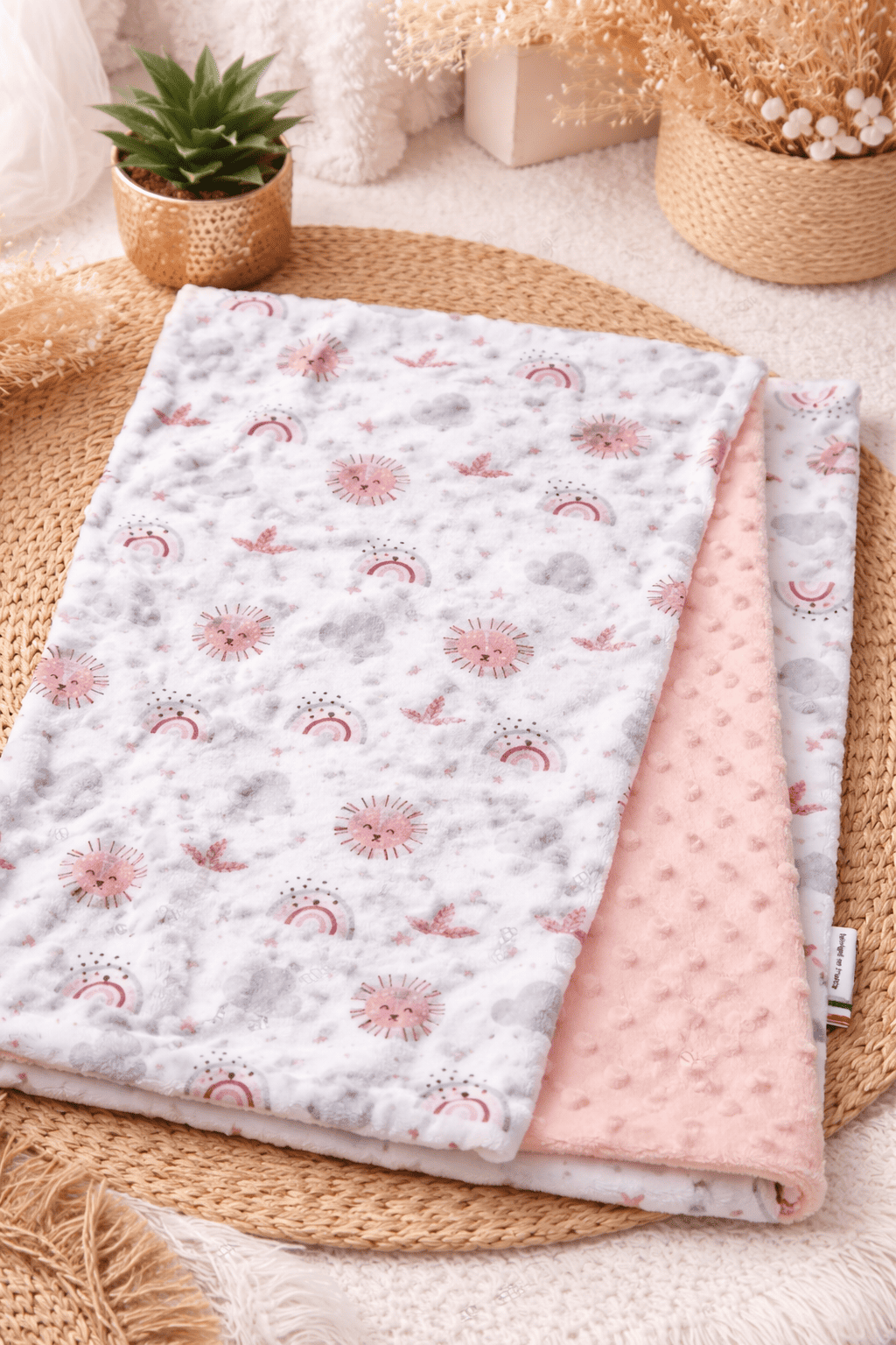 Cette couverture est composée de deux faces en minky, saumon et imprimé lions. Tissus certifiés oeko- tex.