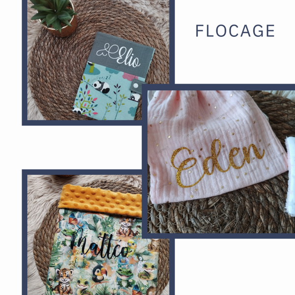 Vous avez la possibilité de floquer un prénom ou un petit mot doux.
