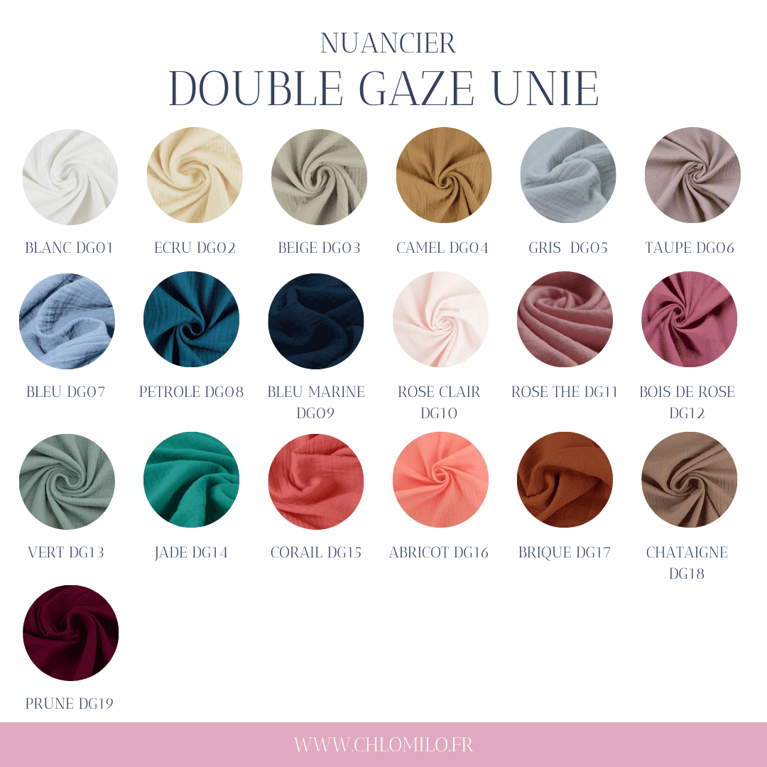 Renseigner ici le code couleur du tissu Double Gaze (DG) choisi en bas de page