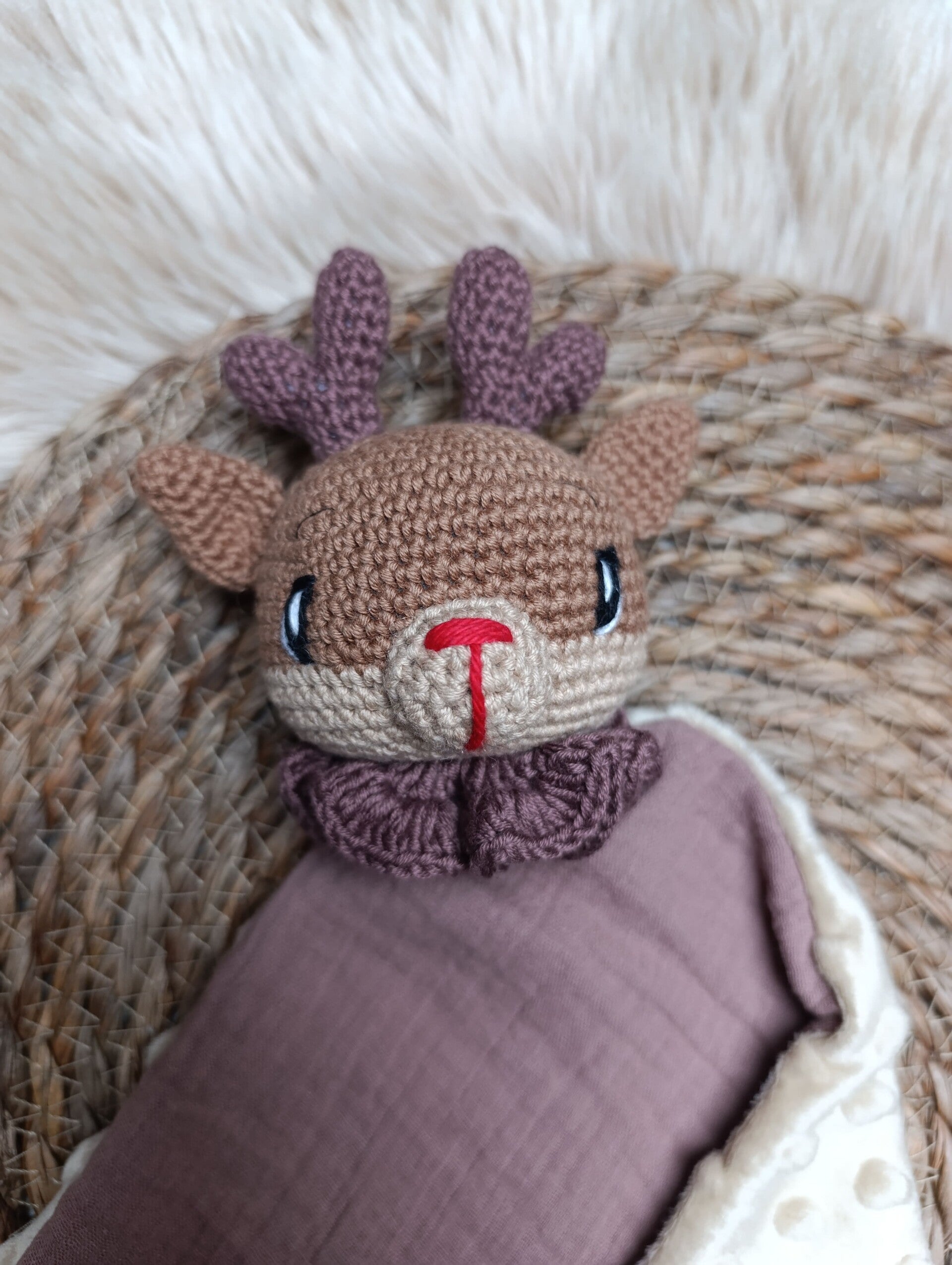 Découvrez nos doudous rennes, entièrement faits à la main avec amour et soin. Chaque renne est unique, créé avec des tissus de qualité et crocheté avec une attention particulière aux détails.