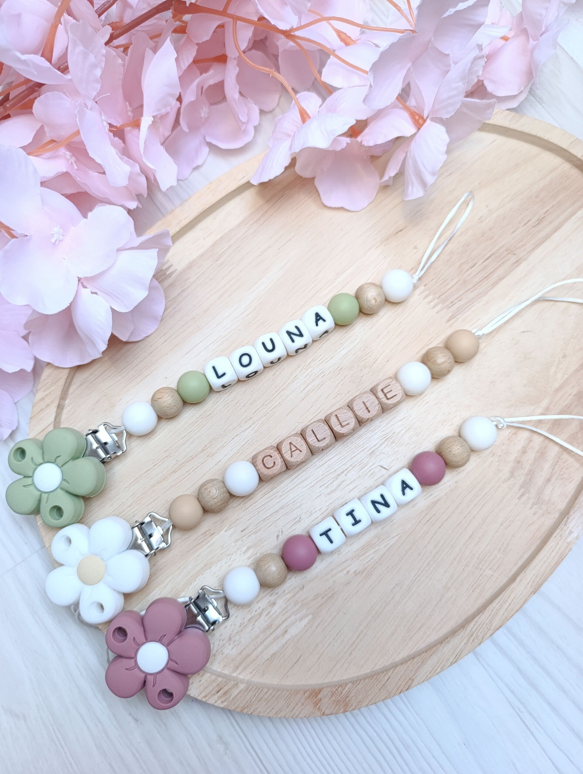 - Attache tétine Bois naturel et silicone alimentaire (Sans BpA, sans phtalates, etc...)