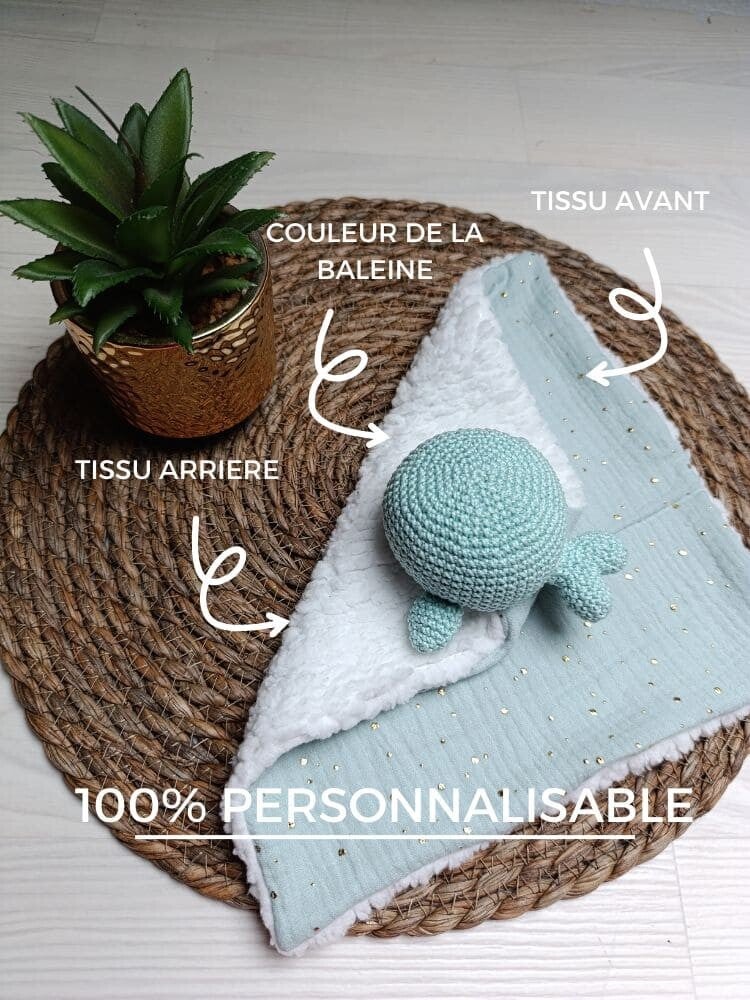 Offrez un doudou baleine fait main au crochet, un cadeau unique et plein de tendresse.