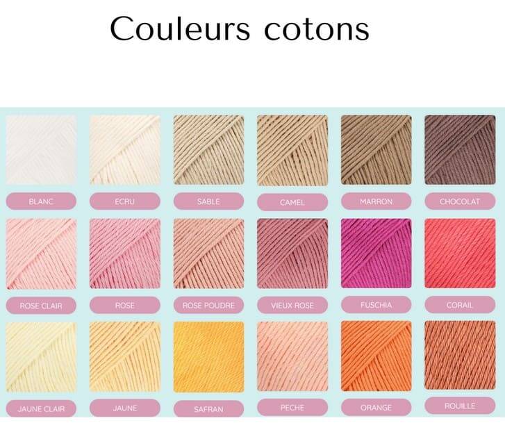 Vous pouvez choisir la couleur de la baleine parmi la sélection de cotons.