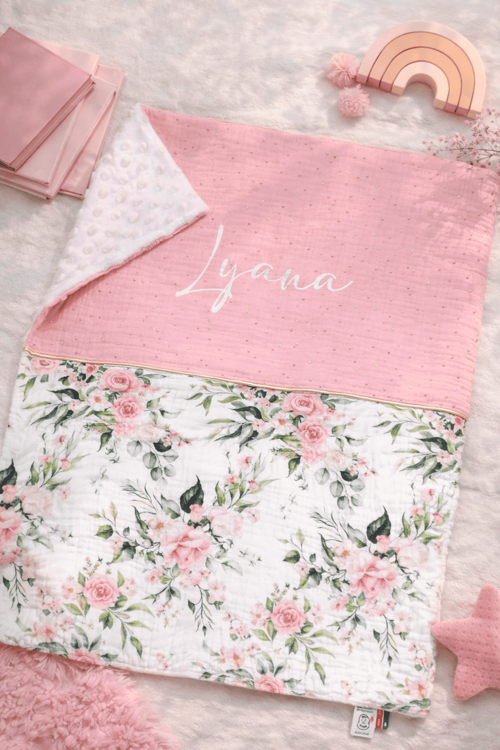 Ces couvertures sont composées d'une face en coton (imprimé et uni ) et une face en minky/ sherpa.
