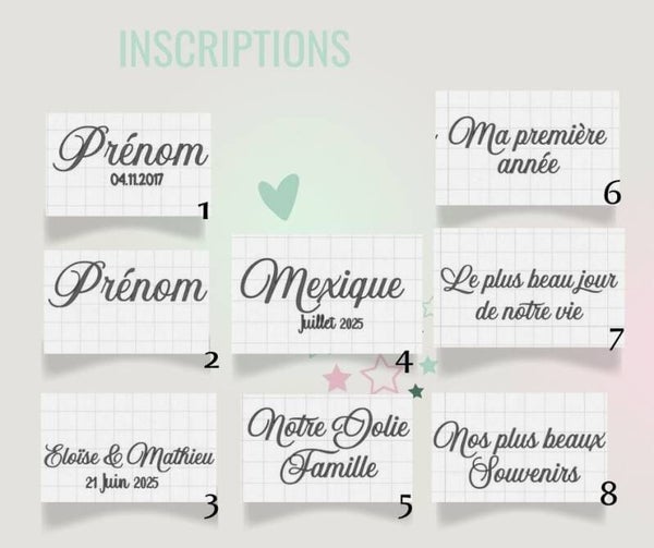Le prénom de l’enfant, des mariés ou de la personne à qui vous l’offrez