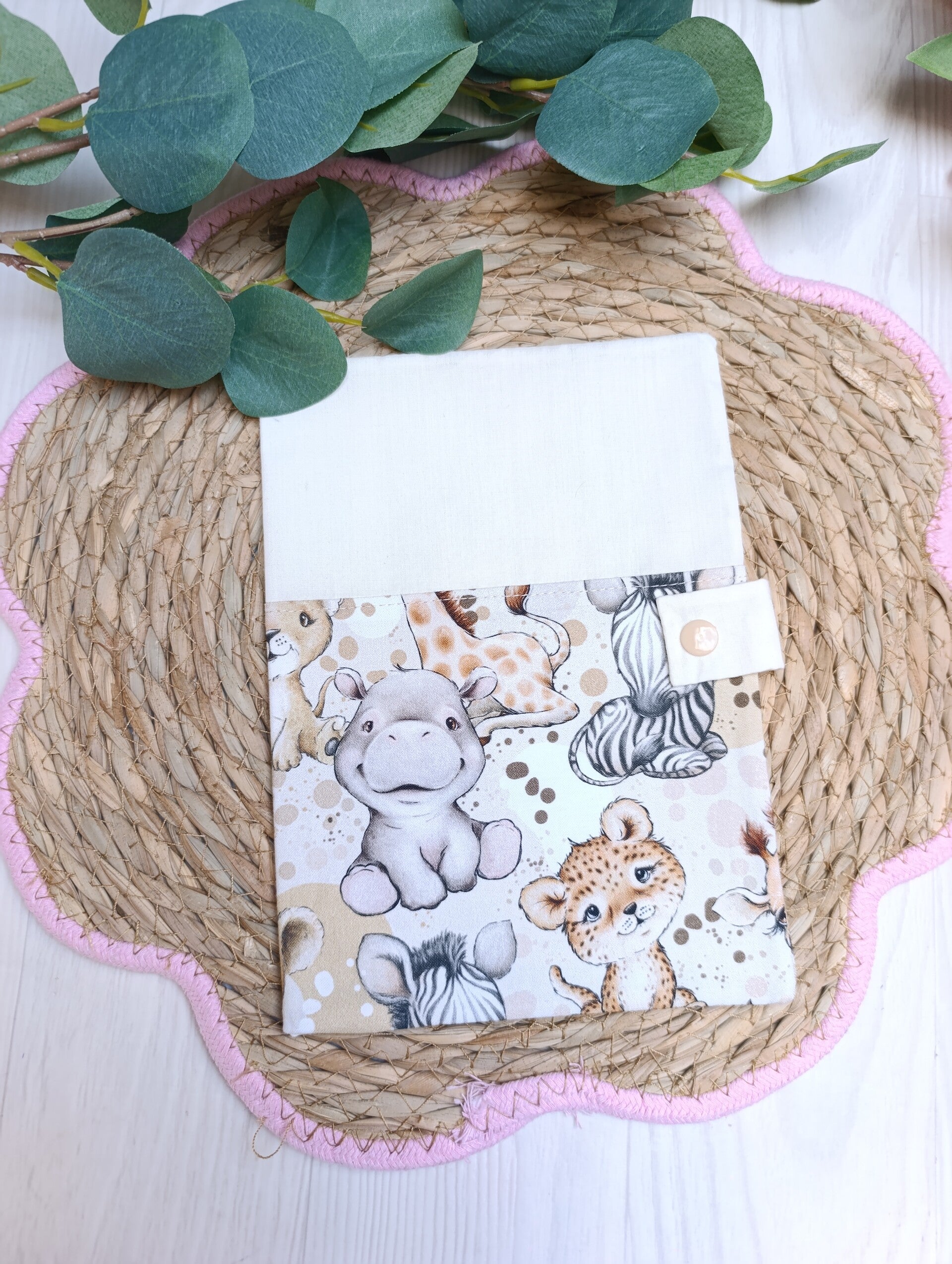 L’extérieur et les rabats intérieurs sont en coton imprimé, la doublure est en tissu uni.